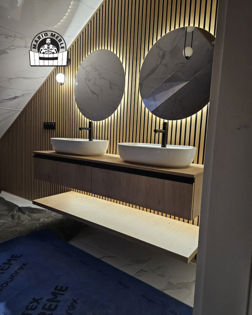 Etap projektowy to miejsce, w którym pojawia się największa przewaga nad gotowymi rozwiązaniami. Możliwość zaprojektowania układu szafek, schowków, wnęk, luster, oświetlenia i stref przechowywania pod konkretnego użytkownika przekłada się na maksymalne wykorzystanie dostępnej przestrzeni. Klienci doceniają również swobodę w doborze stylu — od minimalistycznych bieli po eleganckie wykończenia na wysoki połysk.